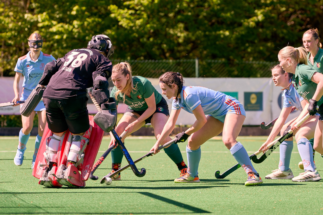 In einer intensiven Feldhockey-Partie erspielten sich die Hockeydamen den ersten Punkt in der Saison gegen TG Frankenthal.