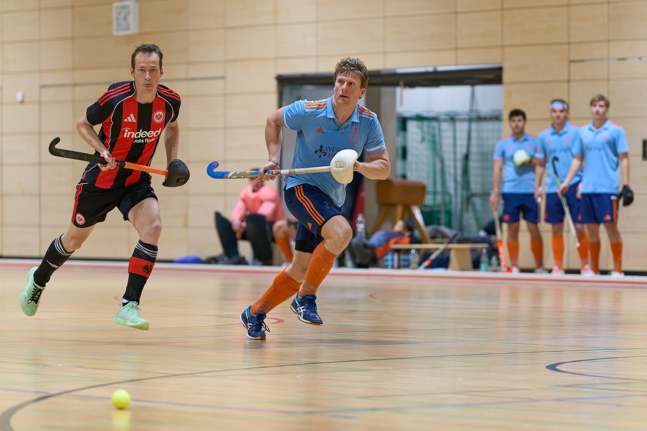Am Sonntag wollten die Wiesbadener Herren die Niederlage vom Vortag wieder gut machen und im Spiel gegen den Tabellenletzten Eintracht Frankfurt wichtige drei Punkte für den Klassenerhalt einfahren. So starteten die Gastgeber druckvoll in die ersten beiden Viertel, in denen jedoch jeweils nur eine der zahlreichen Torchancen genutzt wurde. Die Gäste aus Frankfurt versuchten ihre Defensive im Spielverlauf besser zu ordnen und gelangten nur vereinzelt vor das Wiesbadener Tor. Eine dieser wenigen Chancen konnten sie jedoch im Nachschuss verwerten, wodurch man mit einem Zwischenstand von 2:1 in die Pause ging.